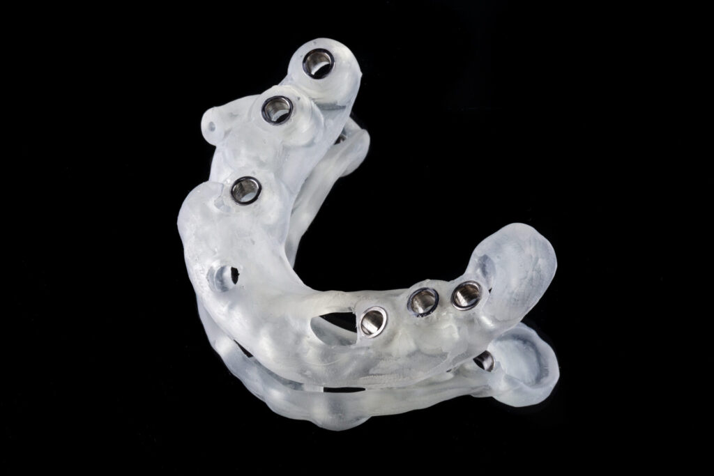 サージカルガイドはマウスピースのような形状をしており、歯に装着し、手術の際インプラント埋入をガイドしてくれます。